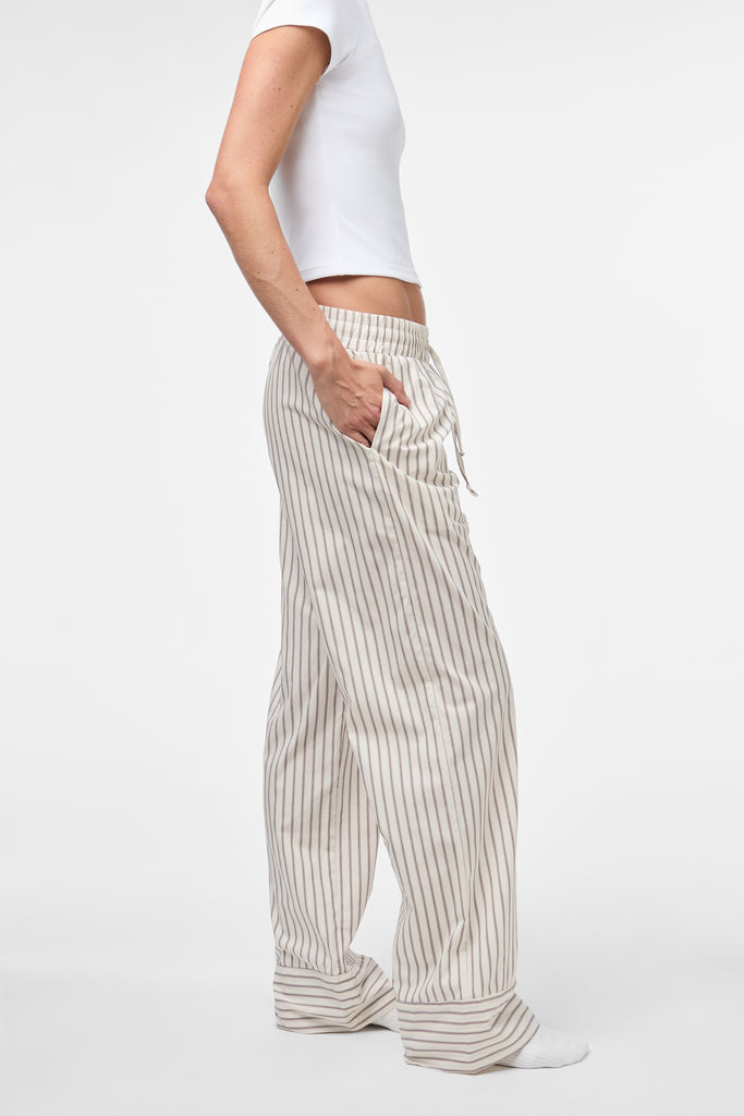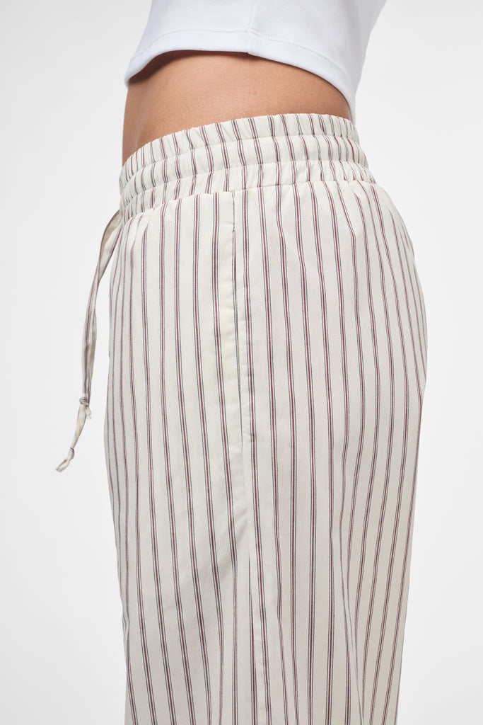 Our perfect everyday pant is made from lightweight cotton for a relaxed, boxy fit. This unisex pant offers the comfort and ease of pajamas, reimagined for daytime wear in a polished poplin stripe. Each style is crafted from deadstock materials, meaning every piece we produce is in limited quantities, and no color is reproduced.