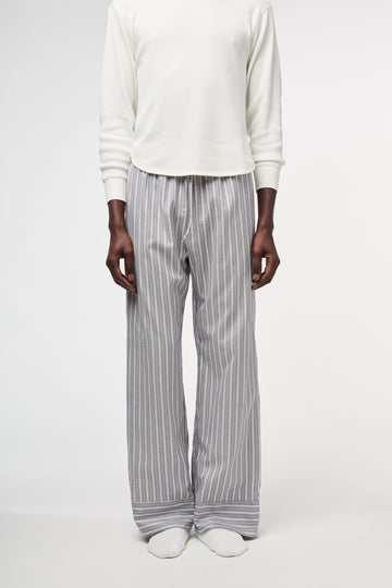 Our perfect everyday pant is made from lightweight cotton for a relaxed, boxy fit. This unisex pant offers the comfort and ease of pajamas, reimagined for daytime wear in a polished poplin stripe. Each style is crafted from deadstock materials, meaning every piece we produce is in limited quantities, and no color is reproduced.